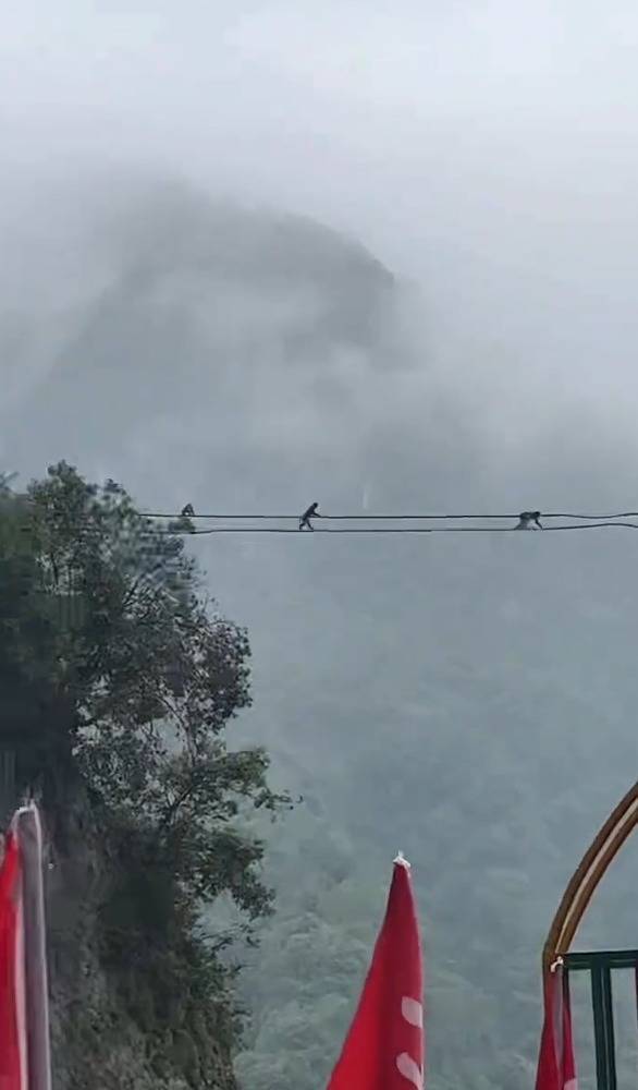视频拍摄者介绍,当日他正在景区游玩,突然发现远处江面上的黑色线缆上有“移动黑点”。手机拉近才发现,竟是几只野生猕猴沿着线缆缓慢移动。“最前面的猴子不时停下观察,后面的猴子紧紧跟随,整个队伍秩序井然,没有一只猴掉队。”该游客表示,猴群渡江过程持续约十来分钟,上岸后迅速钻进树林,只留下岸边游客的阵阵惊叹。
